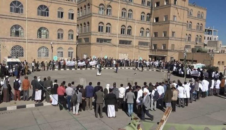 The Ministry of Public Health and Population organized a protest condemning the US-Saudi-Emirati escalation and the continuation of detention fuel tankers. The participants denounced preventing fuel tankers from entering the port of Hodeidah, despite obtaining UN permits and completing all examination procedures.