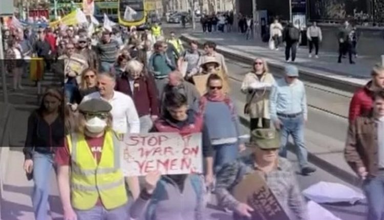 The demonstration took place on Saturday, marking the seventh anniversary of the Saudi aggression on Yemen, upon a call by Ireland’s anti-war movement.