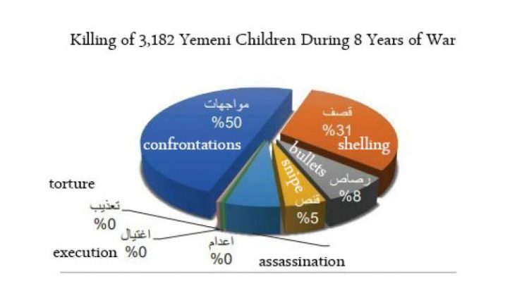 Rasd Coalition said on its Twitter account that it had documented the killing of 3,182 children, including 2,795 males and 387 females, distributed over 20 Yemeni governorates.