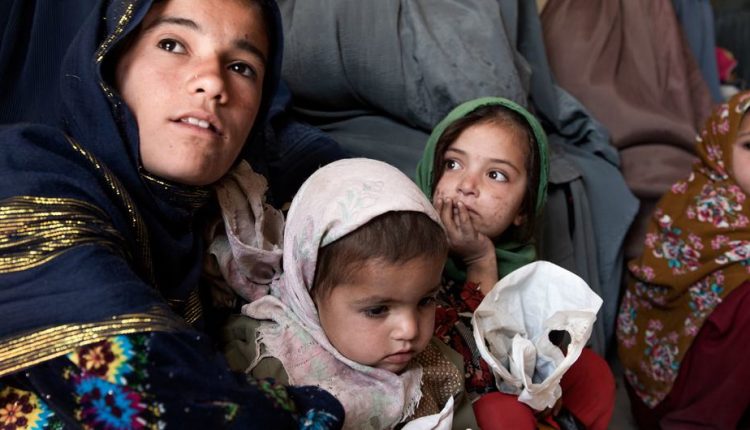 Women receive food rations at a food distribution site in Herat, Afghanistan.