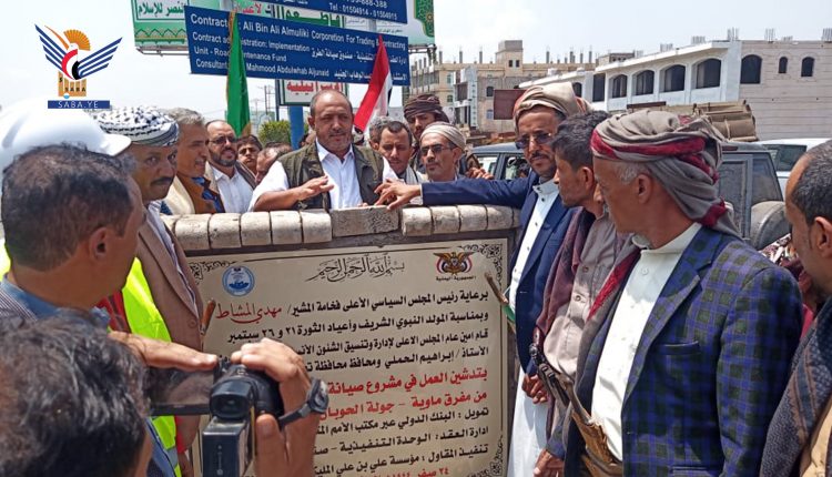 Secretary-General of the Supreme Council for the Management and Coordination of Humanitarian Affairs Ibrahim al-Hamli along with members of the Shura Council Mansour Saddam and Mahmoud Bajash laid on Tuesday the foundation stone for the maintenance project of the main street in Taiz province, starting from Mawiyah Junction to al-Hawban Roundabout.