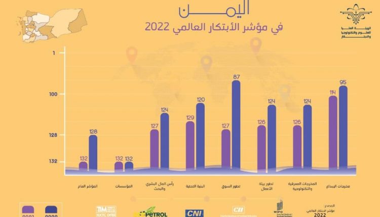 Yemen has made progress in the Global Innovation Index (GII) by surpassing three ranks from 131st in 2021 to 128th in (2022).