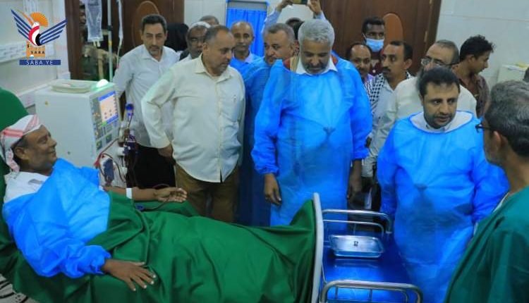 Governor Qahim, accompanied by the directors of the Public Health Office in the province Khaled al-Madani, the Directorate of Beit Al-Fa heard from Director General of Dialysis Centers in the province Dr. Ayman Kamal and Director of the Center in the district Dr. Abdullah Shahari an explanation of the components of the center, which has a capacity of 22 chairs, and currently provides its services to 48 cases of kidney failure patients.