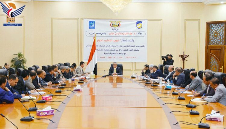 Prime Minister Dr. Abdulaziz Saleh bin Habtoor stressed the significance of enhancing the complementary roles of the ministries concerned with the medical education sector and relevant authorities to advance the educational process and its outputs.